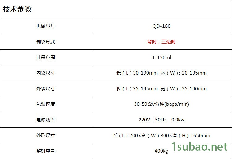 9.此設備包裝量,適合每袋包裝量為10-200克之內的物料包裝,封口形式根據客戶要求選擇。
